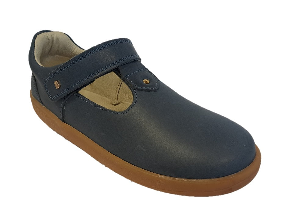 Bobux Kid+ Louise is a classic T-bar shoe in blue leather, with a single Velcro strap for a secure and comfortable fit. Features a padded ankle cuff for extra comfort, and a lightweight, flexible sole unit.