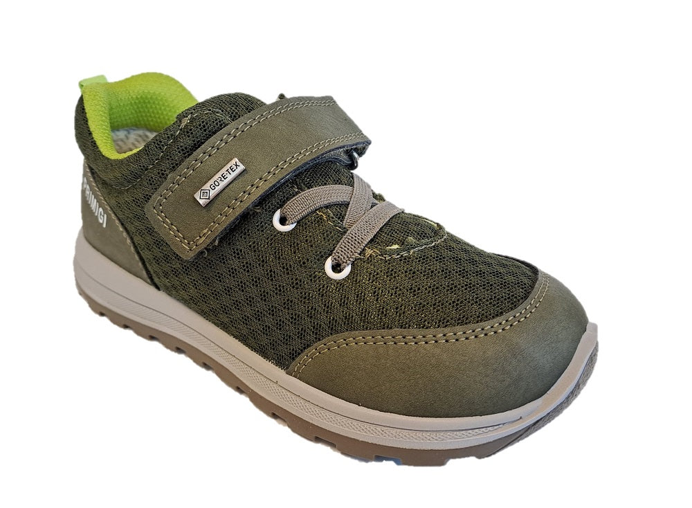 Primigi Tiguan is a khaki waterproof trainer with elastic laces and a Velcro strap for a secure fit. Features a padded tongue and ankle cuff for extra comfort, a Gore-Tex membrane to ensure feet stay dry, and a protective bumper at the toe. 7859000